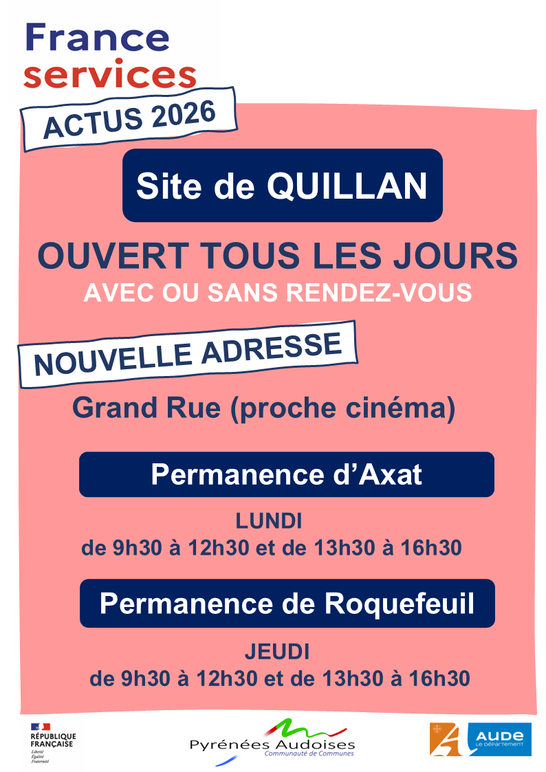 France Services (Quillan) : 04 28 05 01 79